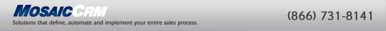 MosaicCRM maintains a dedicated staff of over 30 highly qualified programmers and system managers specializing in custom work flow applications, design and systems maintenance. Contact Oursourcing@MosaicCRM.com and learn how to expand your resources. at incredibly affordable costs! |